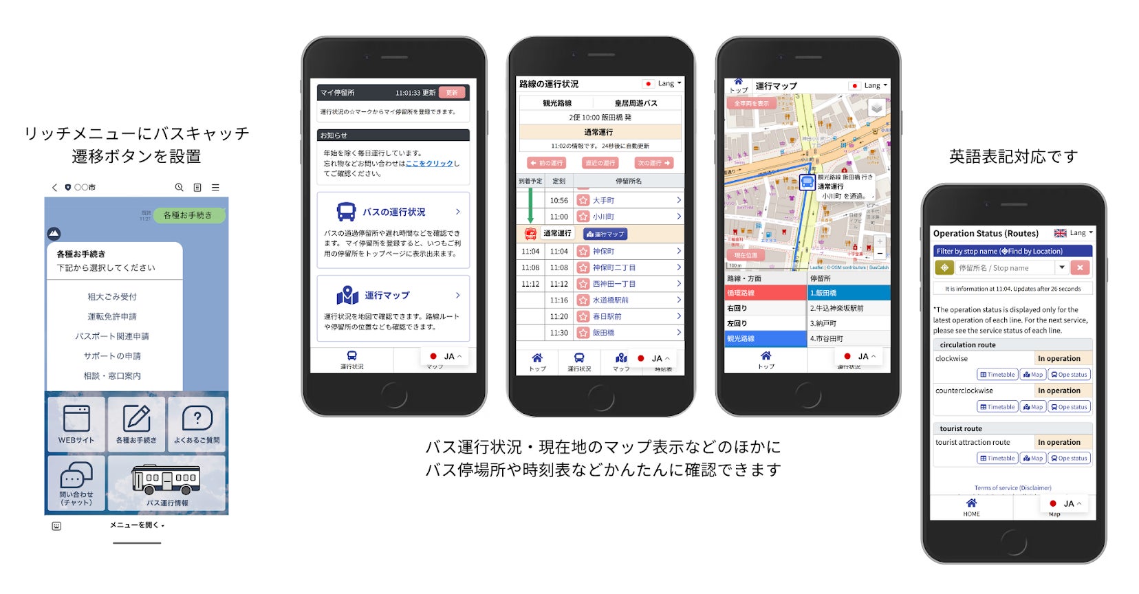 これにより、すでにバスキャッチを導入している自治体は、住民向け情報発信の強化をすぐに実現できるほか、未導入の自治体においても、公共交通DXの第一歩として段階的な導入検討が可能となります。