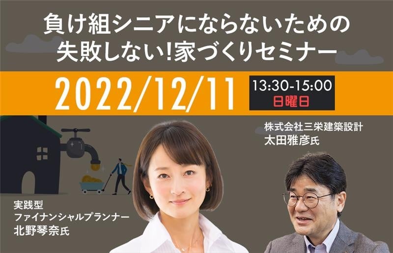 ほとんどの人が知らない、投資ではなく、負け組シニアにならない家づくりノウハウを提供、「負け組シニアにならないための失敗しない!家づくり成功セミナー」