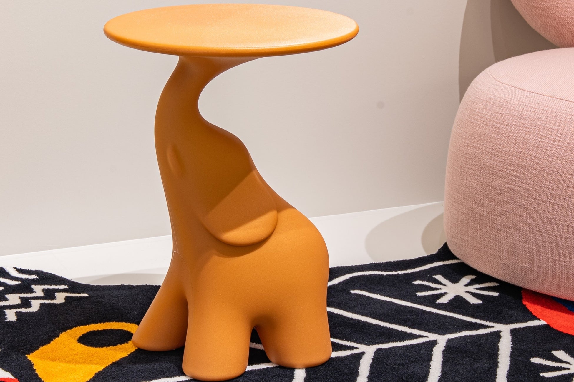 ゾウの長い鼻が円形の天板を支えるユニークな形が特徴のサイドテーブル。日常にちょっとした遊び心と上質なアクセントを加えられる一台です。リサイクル可能なポリエチレン製で、軽量かつ高い耐久性を備えており、屋内外を問わず使用できます。豊富なカラー展開と実用的なデザインで、リビングやテラスなど場所を選ばず活躍します。