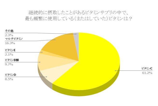 ▷ ビタミンC が最も人気:61.18 %が継続的に摂取