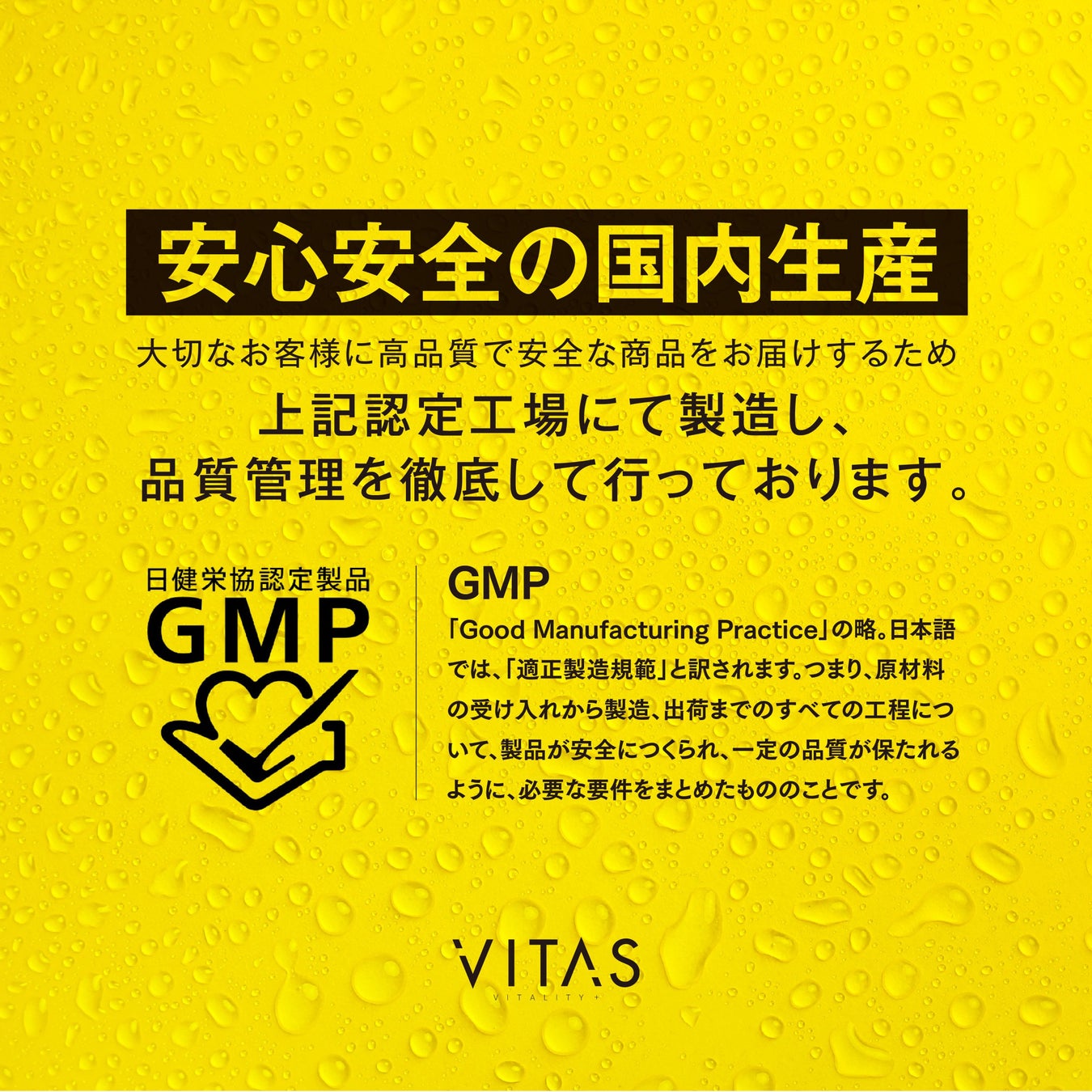 「VITAS VITAMIN C」は、日本健康・栄養食品協会にて適正製造規範が認められた「GMP 認定工場」で製造しています。