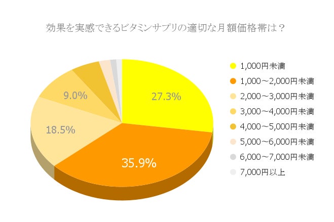 「効果を実感できるビタミンサプリを毎月利用し続けるための価格帯として、適切だと感じる範囲は?(月額)」という質問では、以下のような結果となりました。