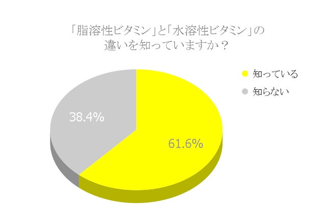 ビタミンには「水溶性」のものと「脂溶性」のものがあります。この2つの違いを理解している人は全体の 61.58 %。