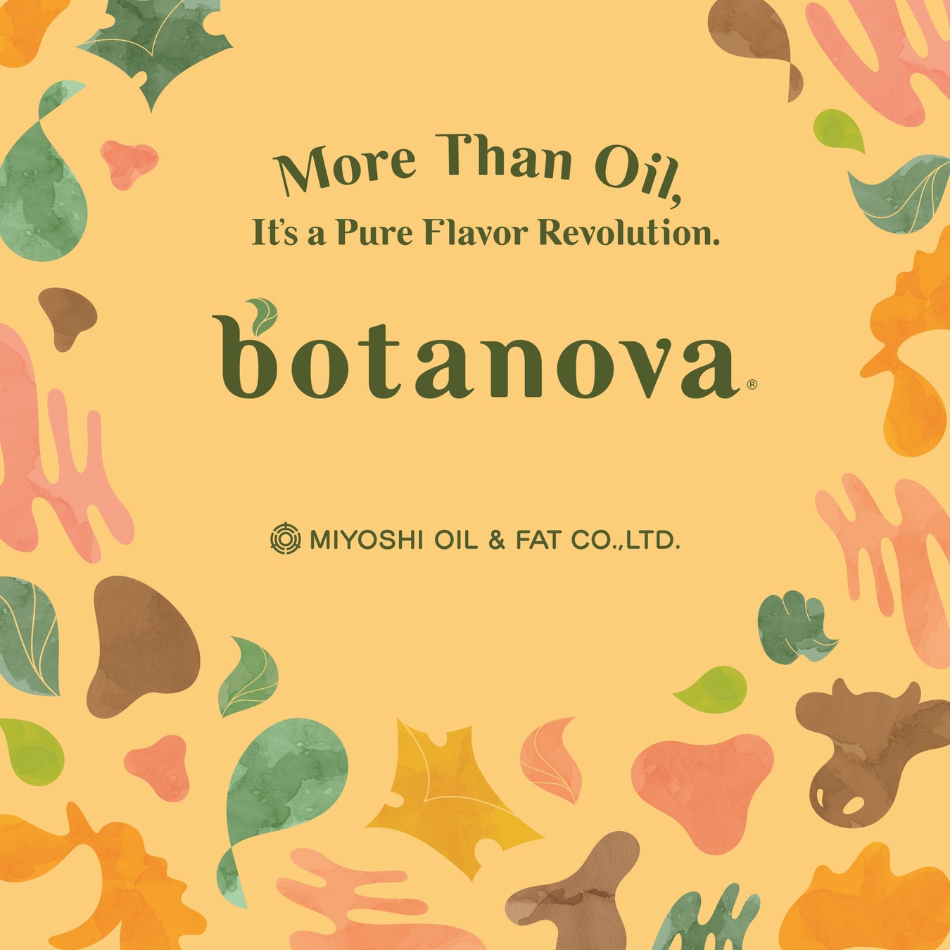 ※1 botanova…動物性原料を使わずに、“動物性油脂の特長を活かしたおいしさ”を創りだした食用油脂のブランドです。バターやラードなど、動物性油脂に含まれる香りの成分や風味のバランスを徹底的に分析し、新しいおいしさを創出しました。https://mmp.miyoshi-yushi.co.jp/next-food-lab-post/botanova-introduction/