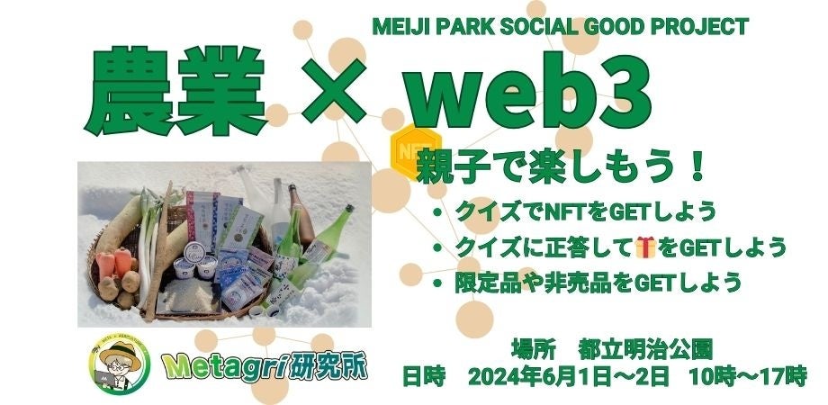 株式会社農情人(本社:千葉県船橋市、代表取締役:甲斐雄一郎)が運営する農業web3コミュニティ「Metagri研究所」は、6月1日(土)~6月9日(日)に都立明治公園で実施されるイベント「MEIJI PARK SOCIAL GOOD PROJECT」に出店し、農業体験型NFT企画を提供し、持続可能な未来に向けた新たな取り組みにつなげます。