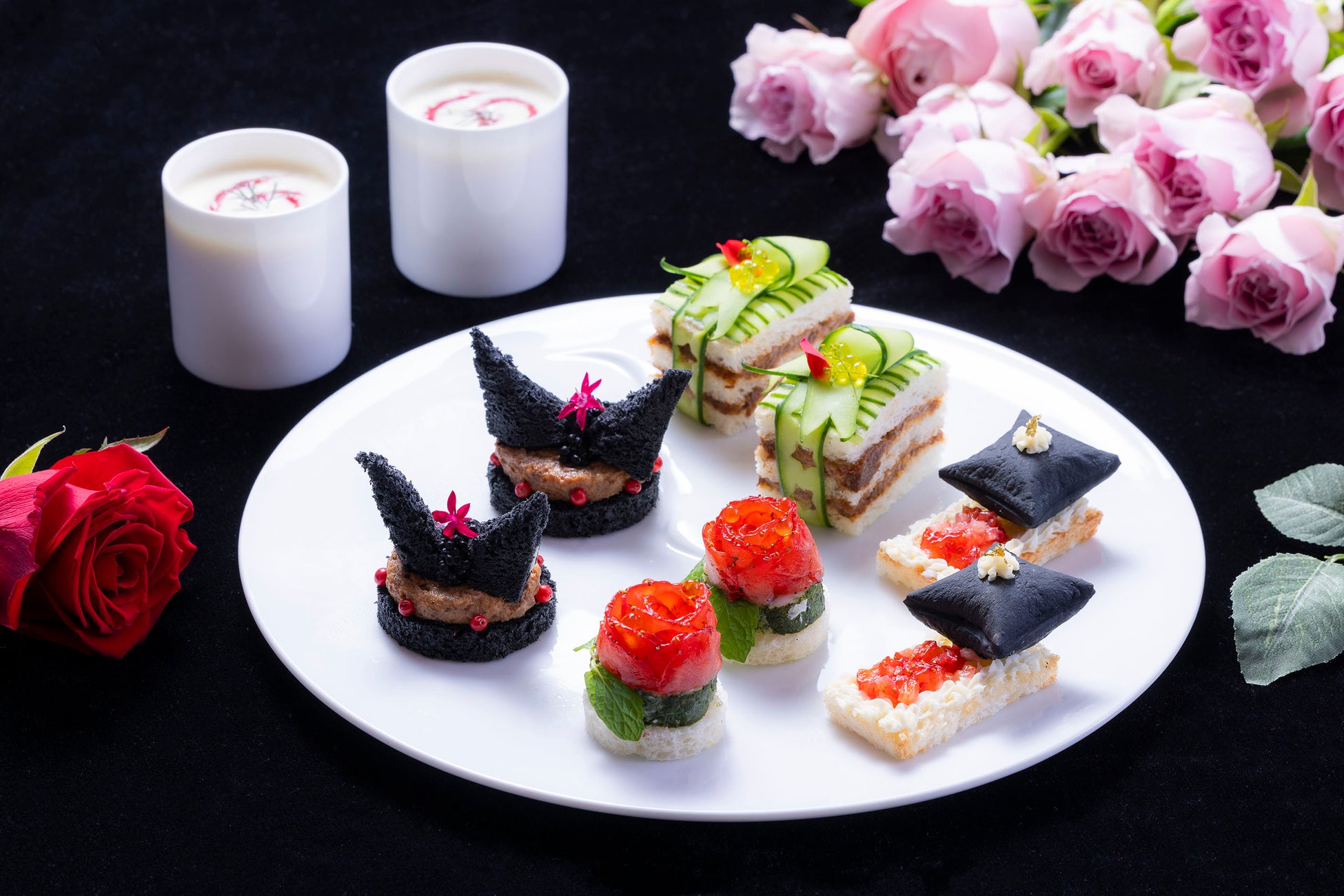 シェフ特製のセイヴォリーも物語の世界観を映し出すユニークなラインアップです。ローストビーフのタルタルに濃厚なクリームチーズと竹炭のパンケーキで魔女のツノを飾った「ローストビーフのウィッチズホーン」や、フレッシュ苺で薔薇を形作り、魚とほうれん草のテリーヌに飾った華やかな一品「ストロベリーローズカナッペ」、ラタトゥイユをエアバッグバケットで包んで枕のように仕上げ、プリンセスのベッドをイメージしたオープンサンド「プリンセス・ピロー」など、「眠れる森の美女」より着想を得た品々が並びます。ドリンクは、熟練の技術を持った生産者によるシングルガーデンの茶葉にこだわる英国高級紅茶ブランドJING TEAより、「ダージリン セカンドフラッシュ」や「アールグレイ」などの定番紅茶から、「レモングラス&ジンジャー」や「ホールペパーミント」、「ブラックカラント&ハイビスカス」などのハーブティーまで、全15種類の茶葉をポットサービスにてお好きなだけお楽しみいただけます。さらに、イタリアのilly-イリー-より厳選されたコーヒーも、お料理やその日の気分に合わせてお選びいただけるようご用意しています。