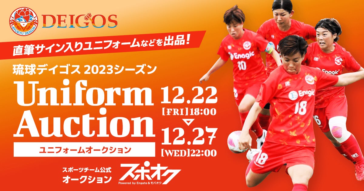 株式会社モバオク(本社:東京都渋谷区、代表取締役社長:生田目 知之、以下モバオク)とエンゲート株式会社(本社:東京都中央区、代表取締役:城⼾ 幸⼀郎、以下エンゲート)が協働し提供するスポーツチーム公式オークションサービス「スポオク」は、九州女子サッカーリーグ1部所属のエナジック琉球デイゴスを運営する株式会社沖縄ウィメンズスポーツクラブ(以下、琉球デイゴス)が実施する「琉球デイゴス2023シーズン ユニフォームオークション」を2023年12月22日(金)から開始します。