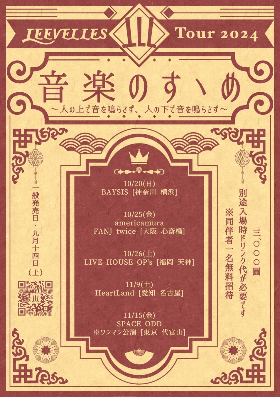 【LEEVELLES Tour 2024 "音楽のすゝめ" 人の上で音を鳴らさず、人の下で音を鳴らさず】