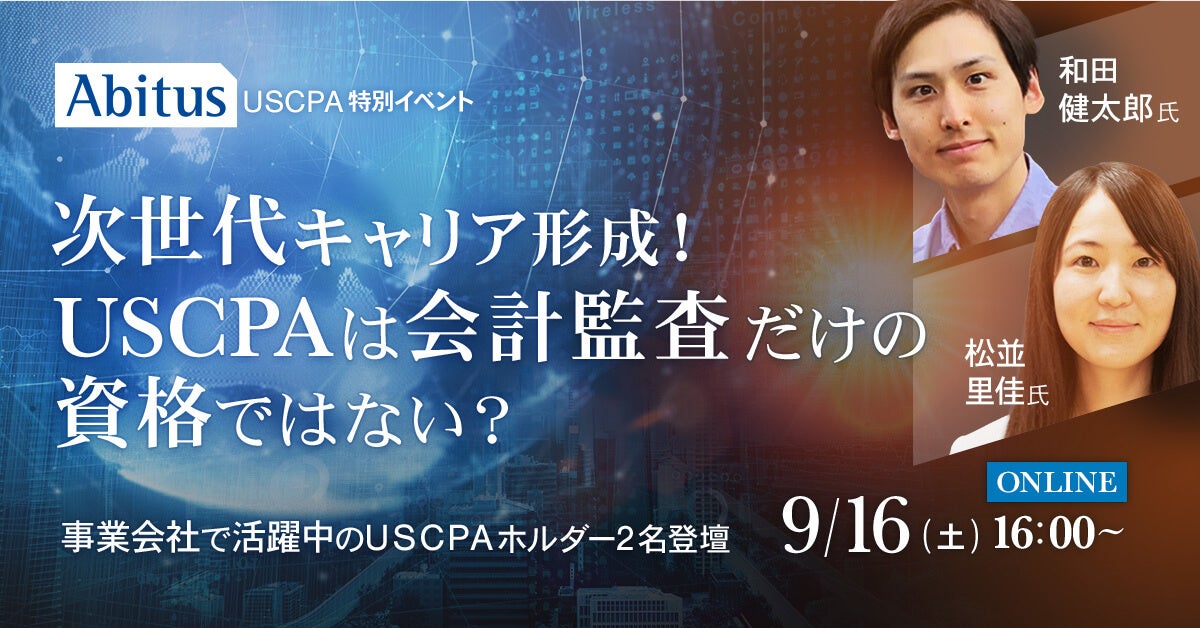 次世代キャリア形成! USCPAは会計監査だけの資格ではない? 事業会社で活躍中のUSCPAホルダー2名登壇|9月16日(土)開催、無料ウェビナー