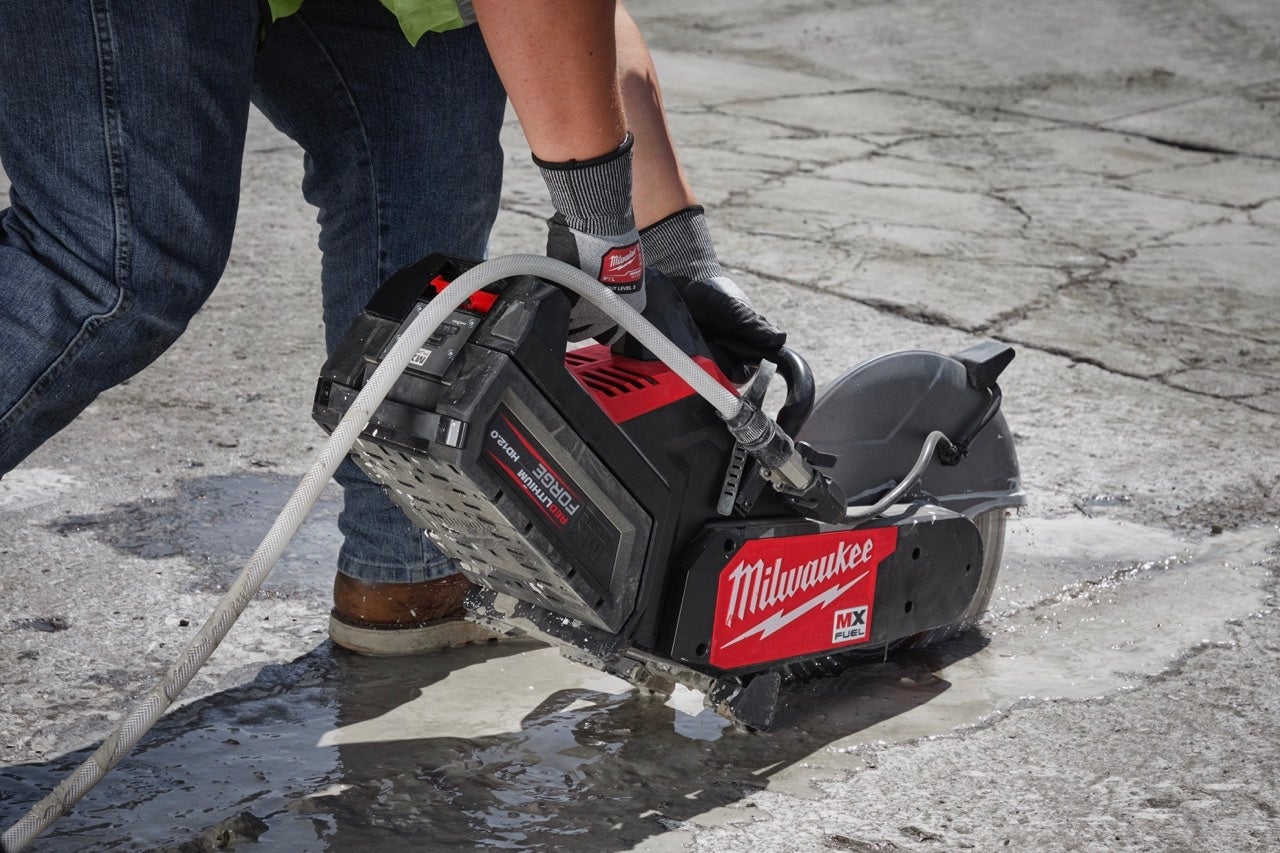 ガソリンエンジン式製品を凌駕する切断性能。排気ガスを心配せず、屋内でも安全/快適に使用が可能「MX FUEL 350mm パワーカッター」