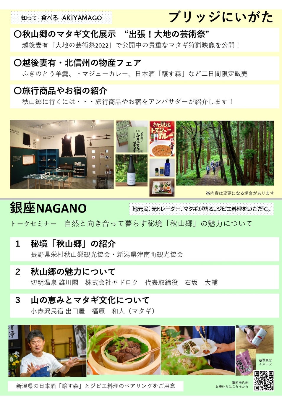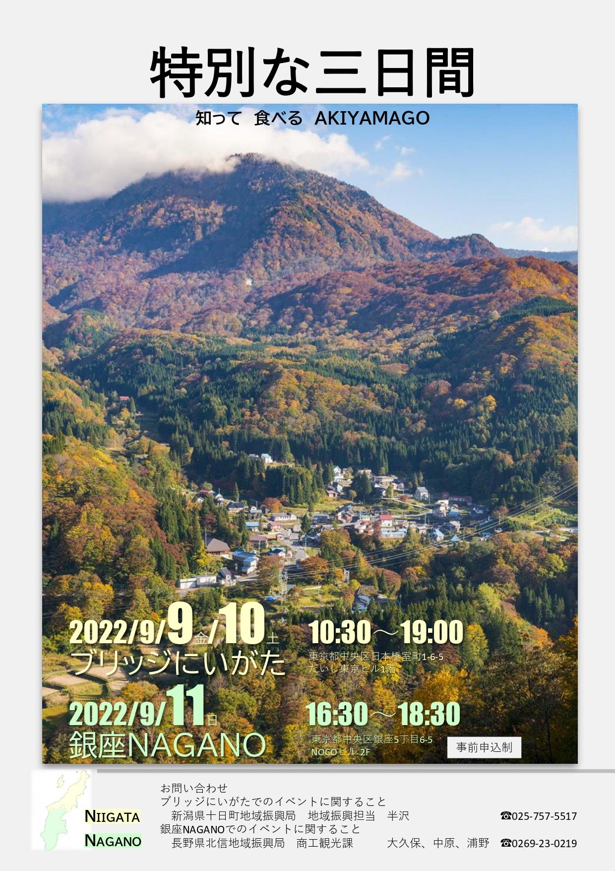県境の魅力発信!新潟県と長野県合同プロモーションイベント「特別な三日間~知って 食べる AKIYAMAGO~」を東京都で開催!9/9(金)~11(日)(新潟県)