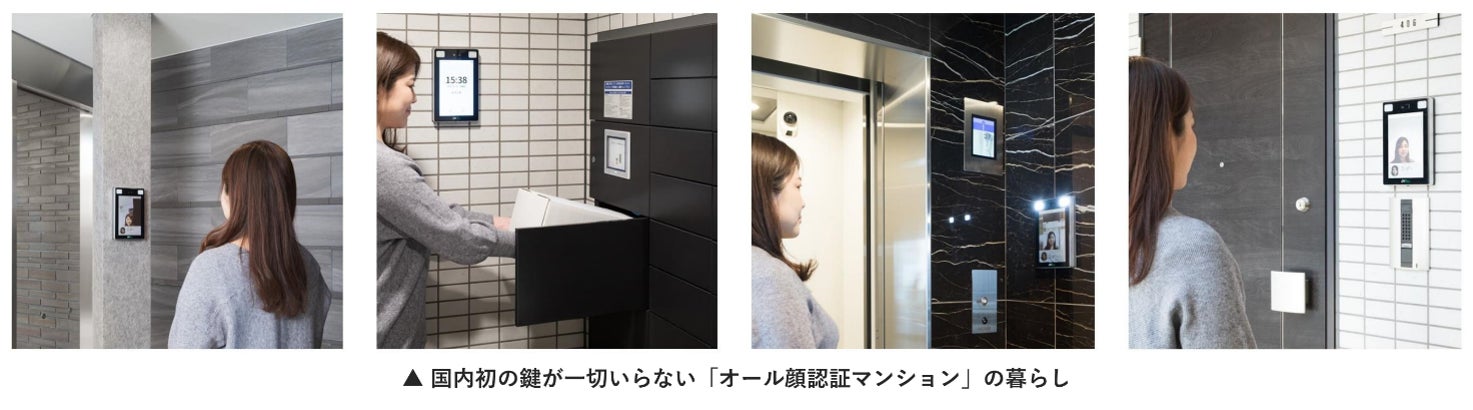 特に集合住宅向けには、エントランスやエレベーターなどの共有部から各専有部まで、鍵が一切いらない「オール顔認証マンション」を国内初で実現しています(2024年3月末時点実績:42棟)。