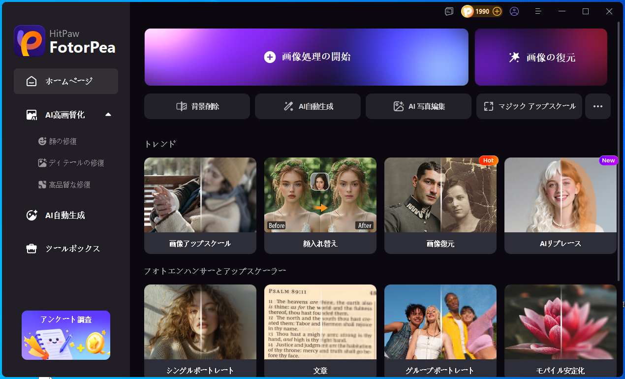 ②HitPaw FotorPea ― 画像強化&AI生成マスター