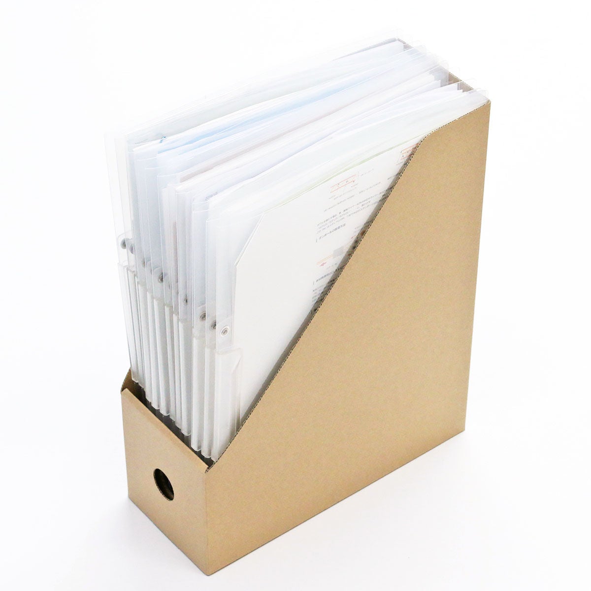 デスク周りや書類などの整理収納グッズとして便利なファイルスタンド!組み立て・解体が簡単で古紙回収にも出せるダンボール製