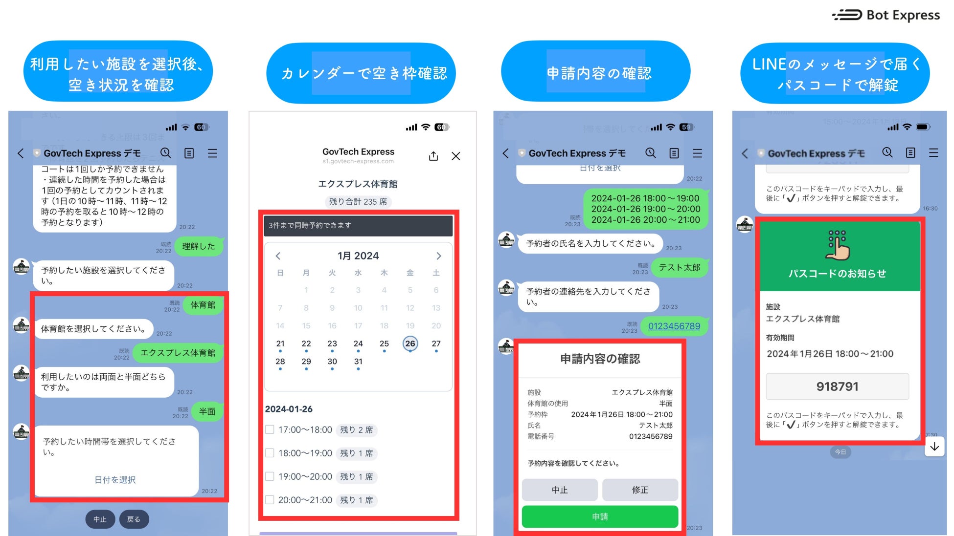 Bot Express、公共施設予約機能に「スマートロック連携機能」を新たに追加。公共施設の予約から解錠のパスコード受け取りまでLINEで完結。鍵の貸し借りは不要に