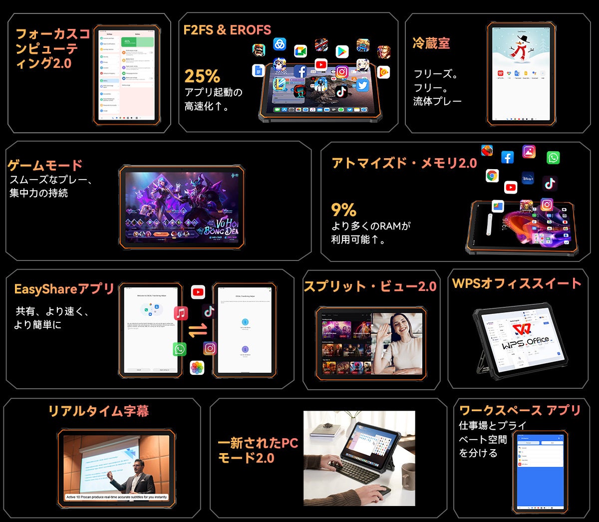 IP68&IP69Kの防水防塵規格、MIL-STD-810Hの耐衝撃性を備えた頑丈なタフネスタブレットであり、5G通信にも対応。赤外線暗視(サーマル)カメラ搭載、MediaTek Dimensity 7300 オクタコアプロセッサーを搭載するなど、頑丈かつ高性能なAndroidタブレットとなっています。