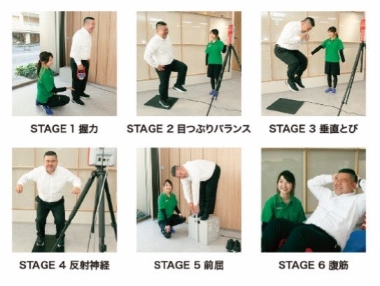 6種目の体力測定を行います。約15分で測定完了!運動能力のばらつきや「からだ年齢」が判明します。
