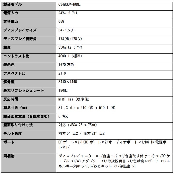 mi.com(Xiaomi 公式ストア):https://www.mi.com/jp/product/xiaomi-curved-gaming-monitor-g34wqi
