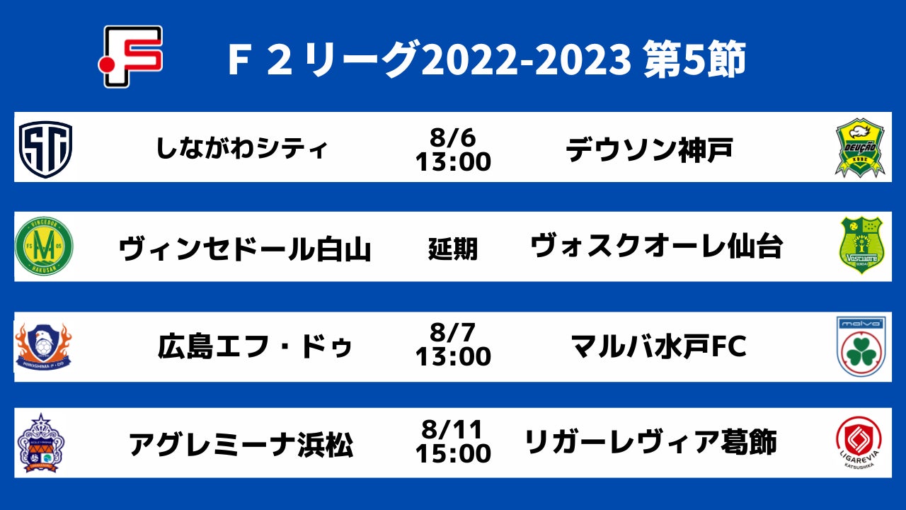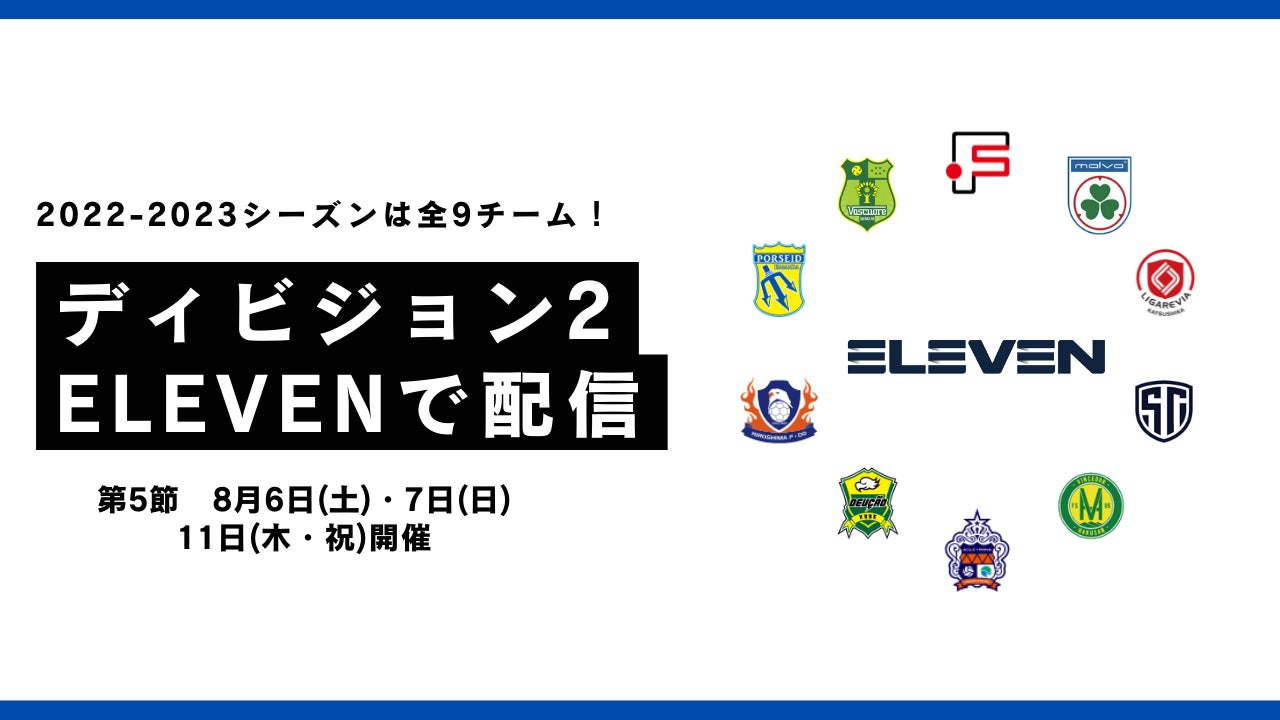 8月6日(土)、7日(日)、11日(木・祝)に開催するFリーグ2022-2023 ディビジョン2 第5節の3試合を以下の通り、ELEVENにてライブ配信いたします!全試合を無料でご視聴いただけますので、ELEVENのアプリをダウンロードいただき、ぜひご視聴ください!