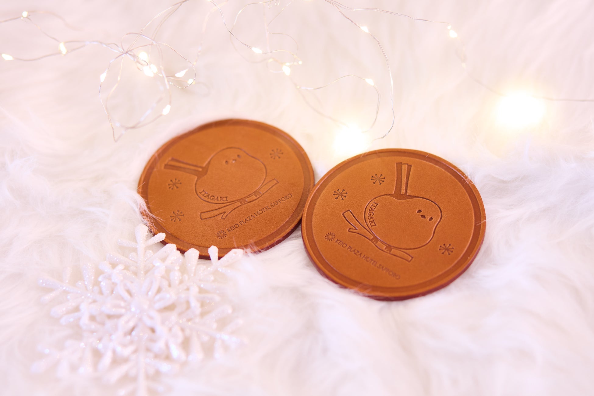 ご宿泊特典として、北海道を代表するレザークラフトとして高い評価を得ている「鞄のいたがき」さんのオリジナル シマエナガコースターをお一人様1個、ご宿泊の記念にお持ち帰りいただけます。