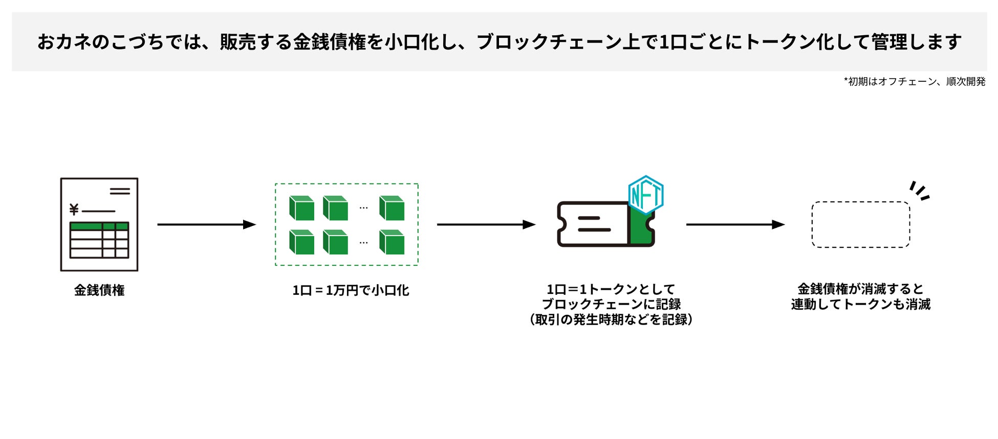 キリフダ株式会社(本社:東京都中央区、代表取締役社長:赤川英之、以下「キリフダ」)は、企業が事業を営む上で発生する「売掛債権」に1口1万円から小口投資できるトークン化債権マーケットプレイス『おカネのこづち』を年内に公開することをお知らせします。公開にあたり本日よりマーケットプレイスの事前登録の受付を行います。本マーケットプレイスを通じて企業の資金繰りと個人投資家への新たな投資機会を提供していきます。