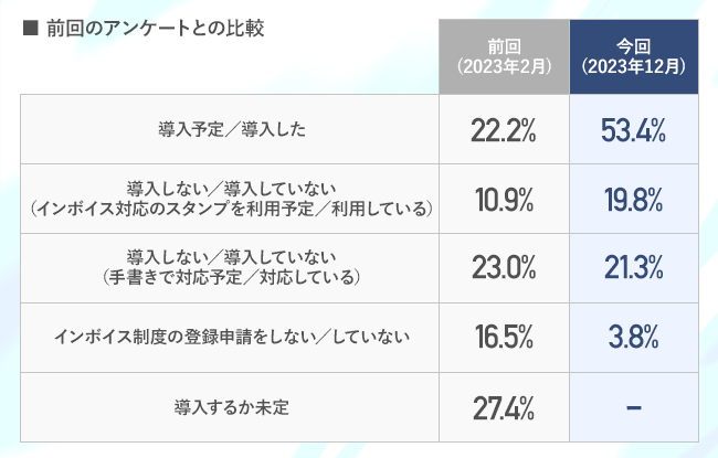 本アンケートは、前回2023年2月に実施した「「インボイス制度」の導入に対する意識調査」の追跡調査となります。