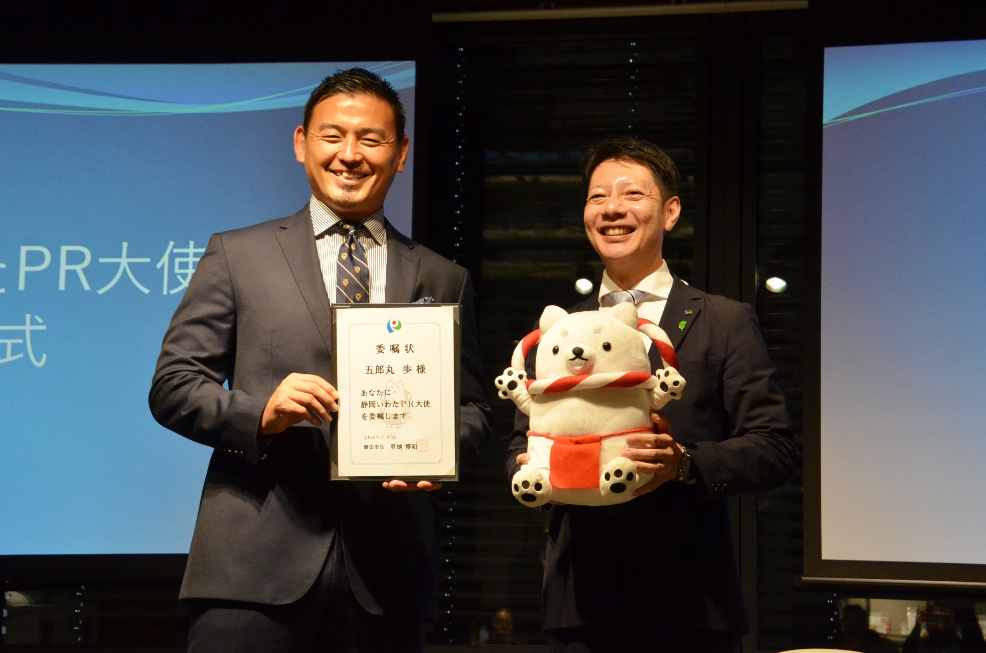 元ラグビーワールドカップ日本代表・五郎丸歩さんへの「静岡いわたPR大使」委嘱式を、横浜市内で行いました。