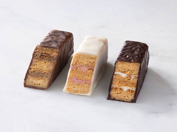 2023年初登場!サクサクと軽いパイ生地と、すっきりした甘さのチョコレートが層を成す、香り豊かなミルフィーユです。バニラとヘーゼルナッツ、苺の3種類を詰め合わせました。