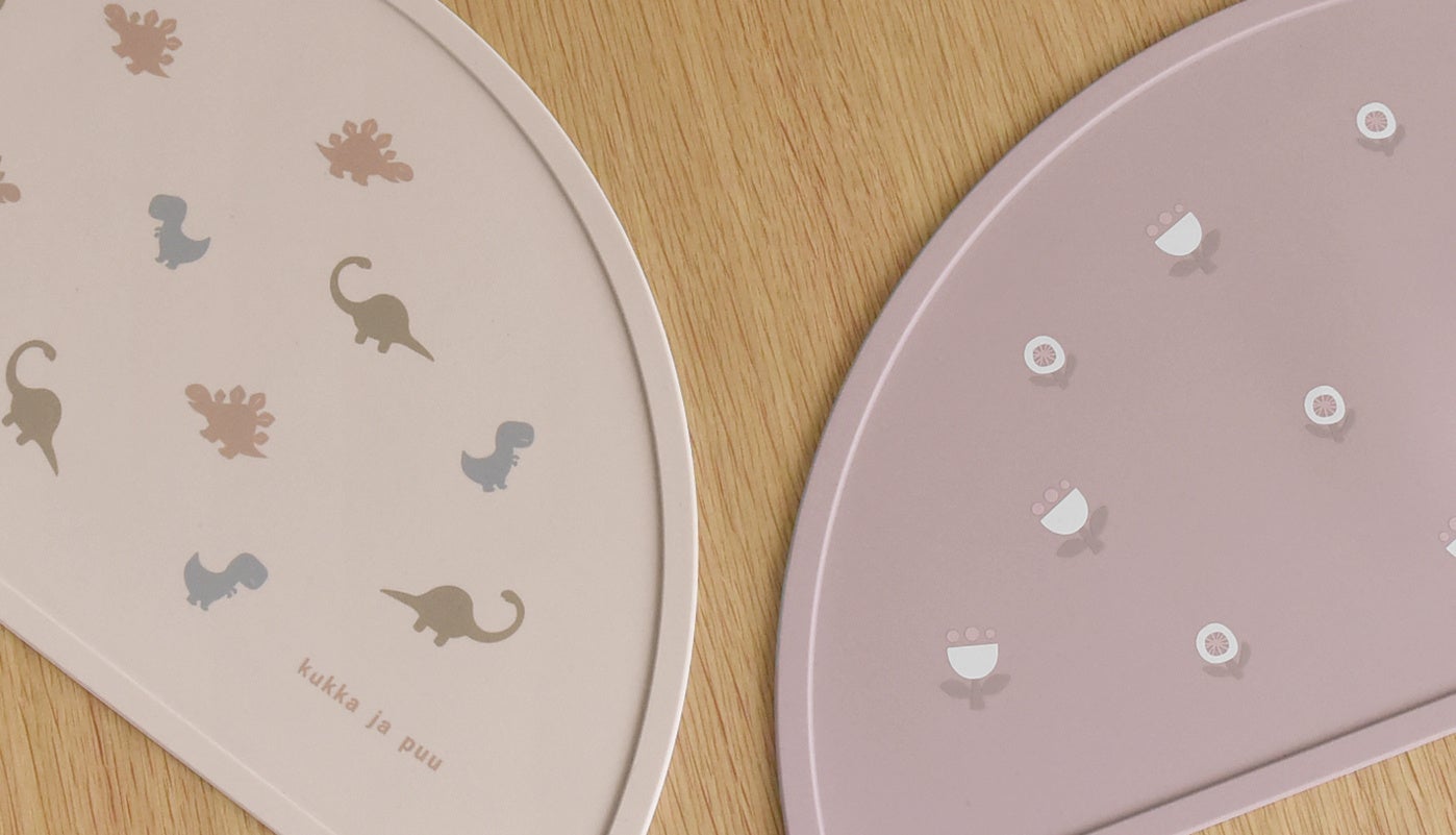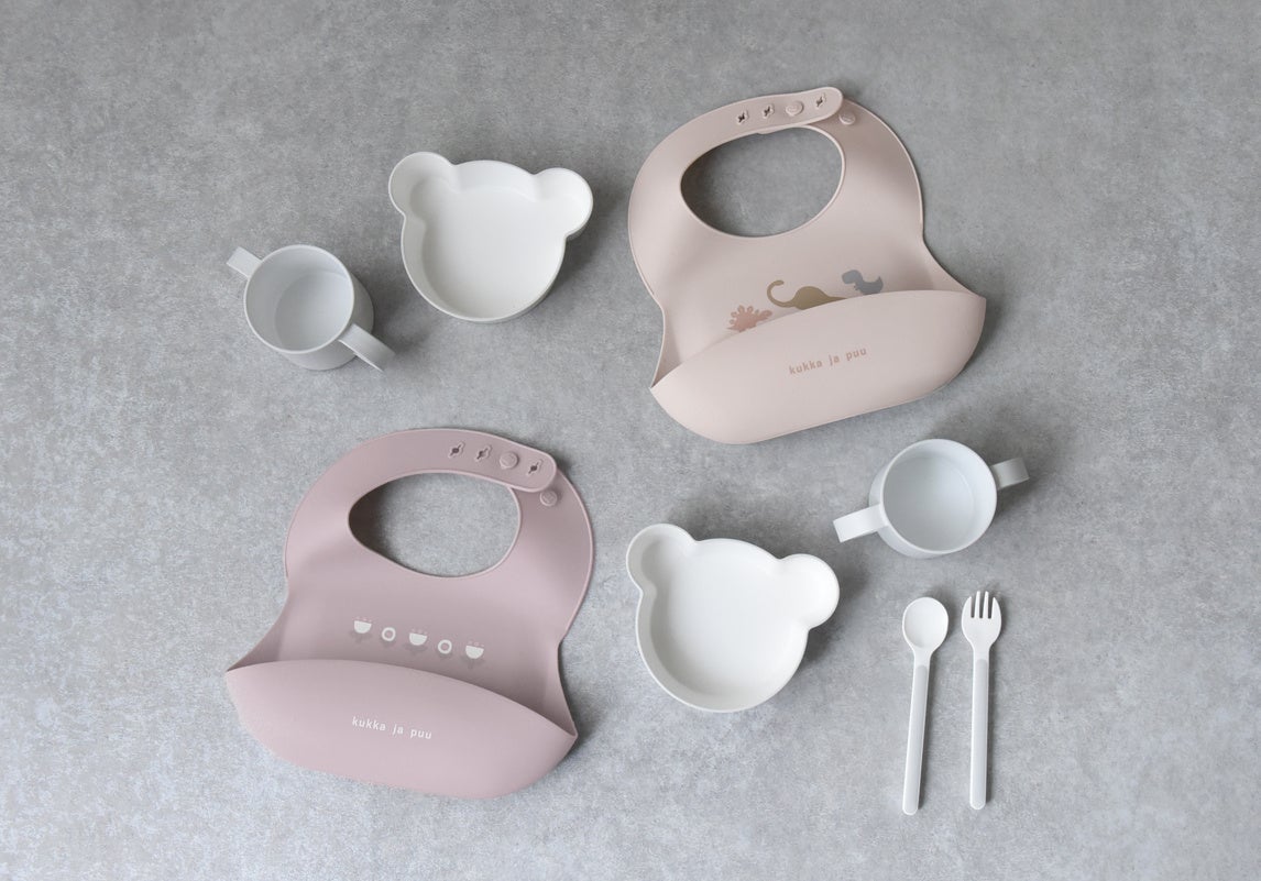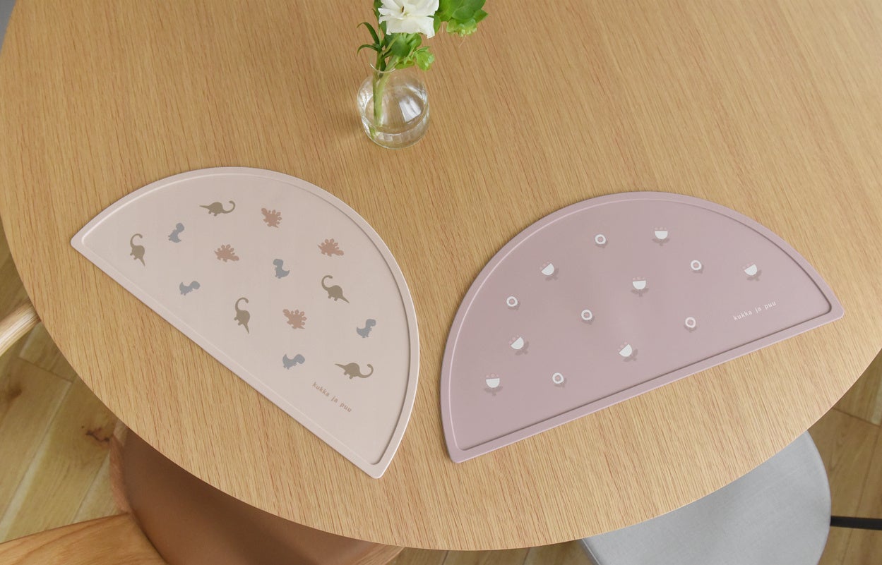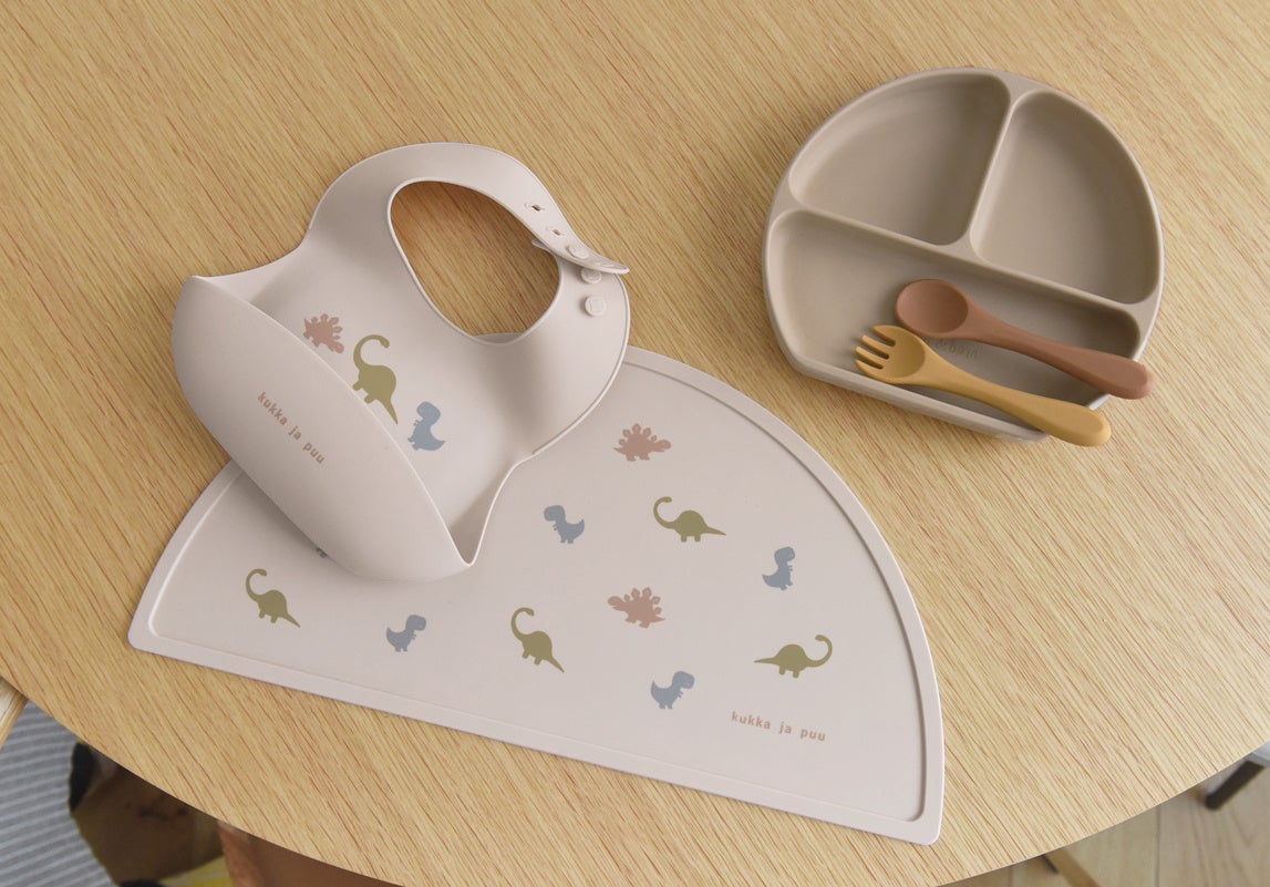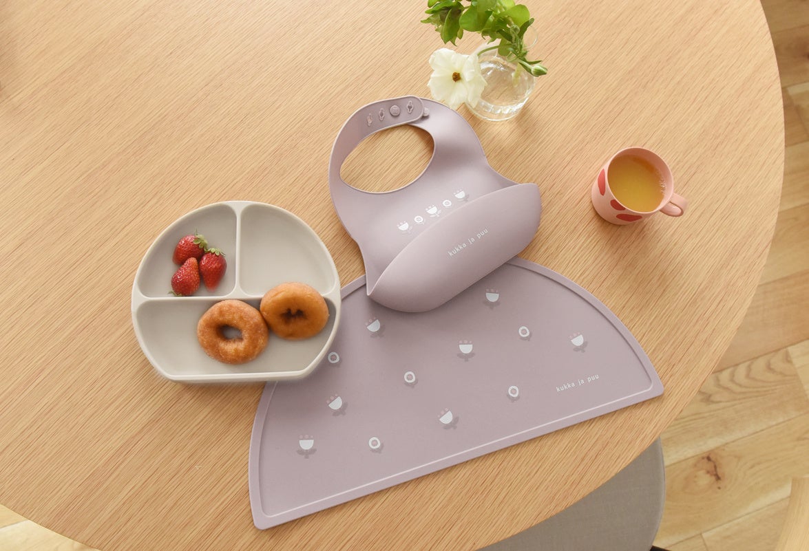 食べこぼしてもサッと拭けて、食洗器洗いもできるから、ベビーのお食事後の片付けがラクになるシリコン製グッズ。kukka ja puu(クッカヤプー)より、シリコン製ビブとお食事マットが5/5(金)発売。