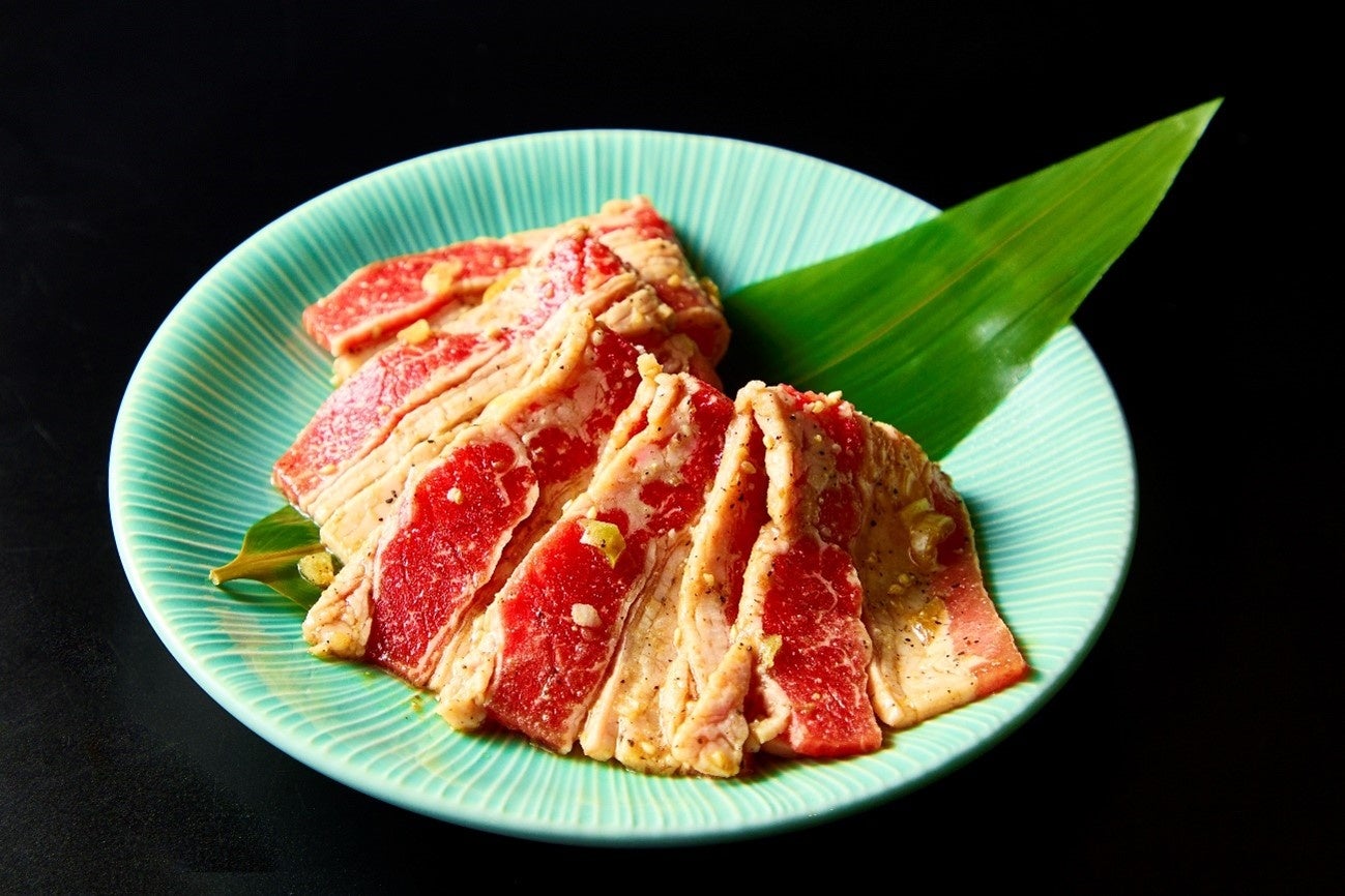 近江牛のバラ肉の中でも、厳選した上モノ部位である、「カイノミ、フランク、インサイド、タテバラ」のみを使用。秘伝の揉みダレを組み合わせることで、とてつもない旨味が出てくるのが特徴です。