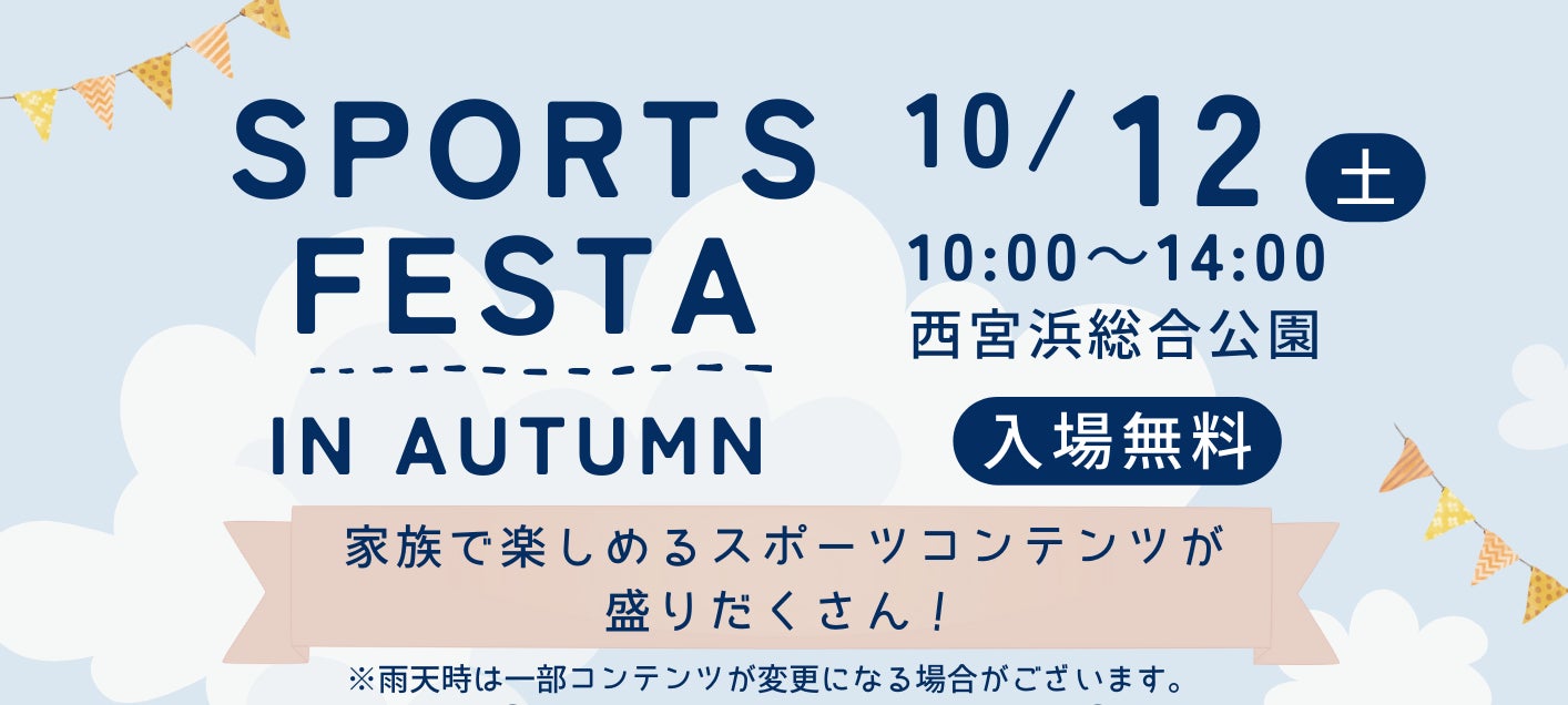 株式会社サップス(本社:兵庫県西宮市、代表取締役社長:中瀨 敏和)及び株式会社ウエルネス阪神(所在地:兵庫県西宮市、代表取締役社長:岡本 直樹)は、阪神園芸株式会社(所在地:兵庫県西宮市、代表取締役社長:久保田 晃司)が指定管理を担う西宮浜総合公園(兵庫県西宮市西宮浜3丁目)で地域住民のウェルビーイングをサポートするため、2024年10月12日(土)に「SPORTS FESTA IN AUTUMN」イベントを開催します。