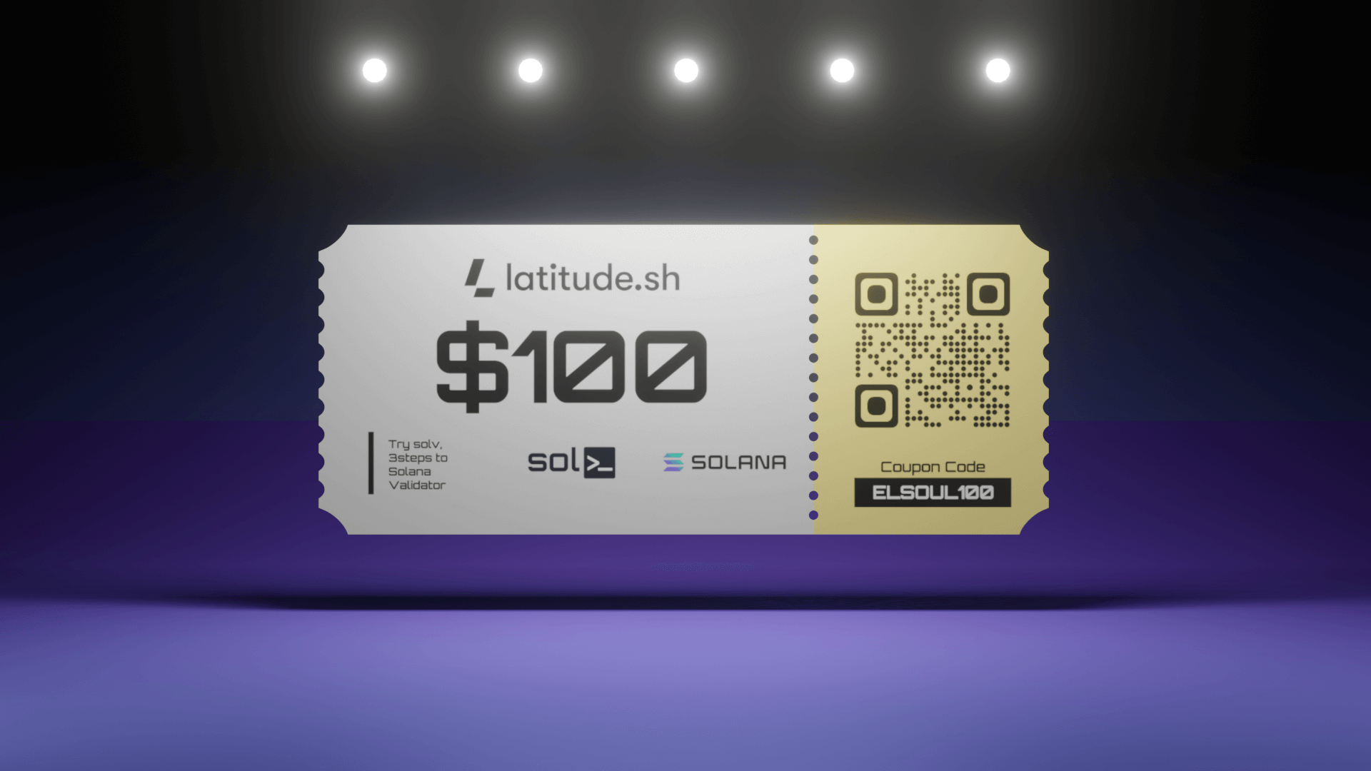 Latitude 社 とのパートナーシップにより、$100 分の無料クレジットクーポンを提供することができるようになりました。このクーポンを利用することで、ユーザーは solv2 を使って Solana バリデーターを実際に手元で試すことができます。このトライアルクレジットを利用して、solv2 の簡単な 3 ステップを実感し、Solana バリデーターの立ち上げと運用の簡便さを体験してください。