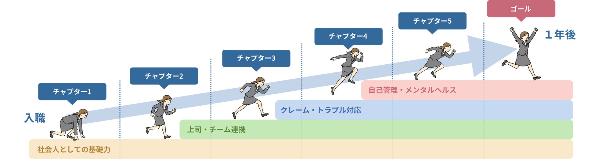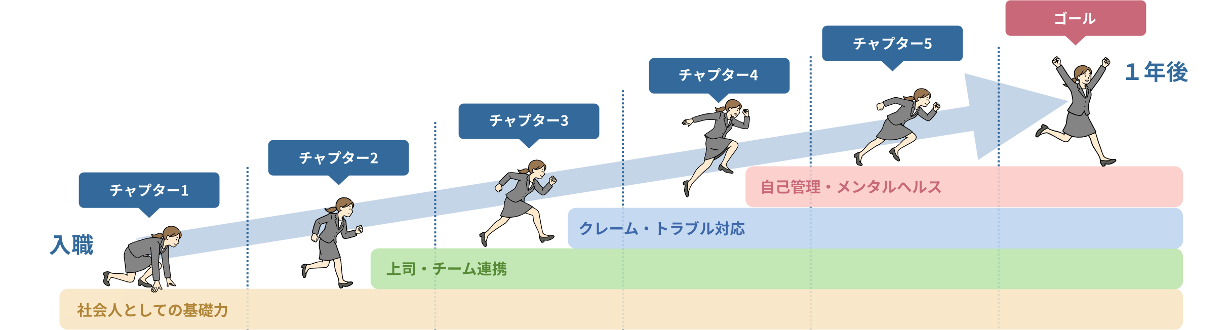 入職から1年間で社会人としての基礎を固め、働くマインドを醸成することを目的としたプログラムです。