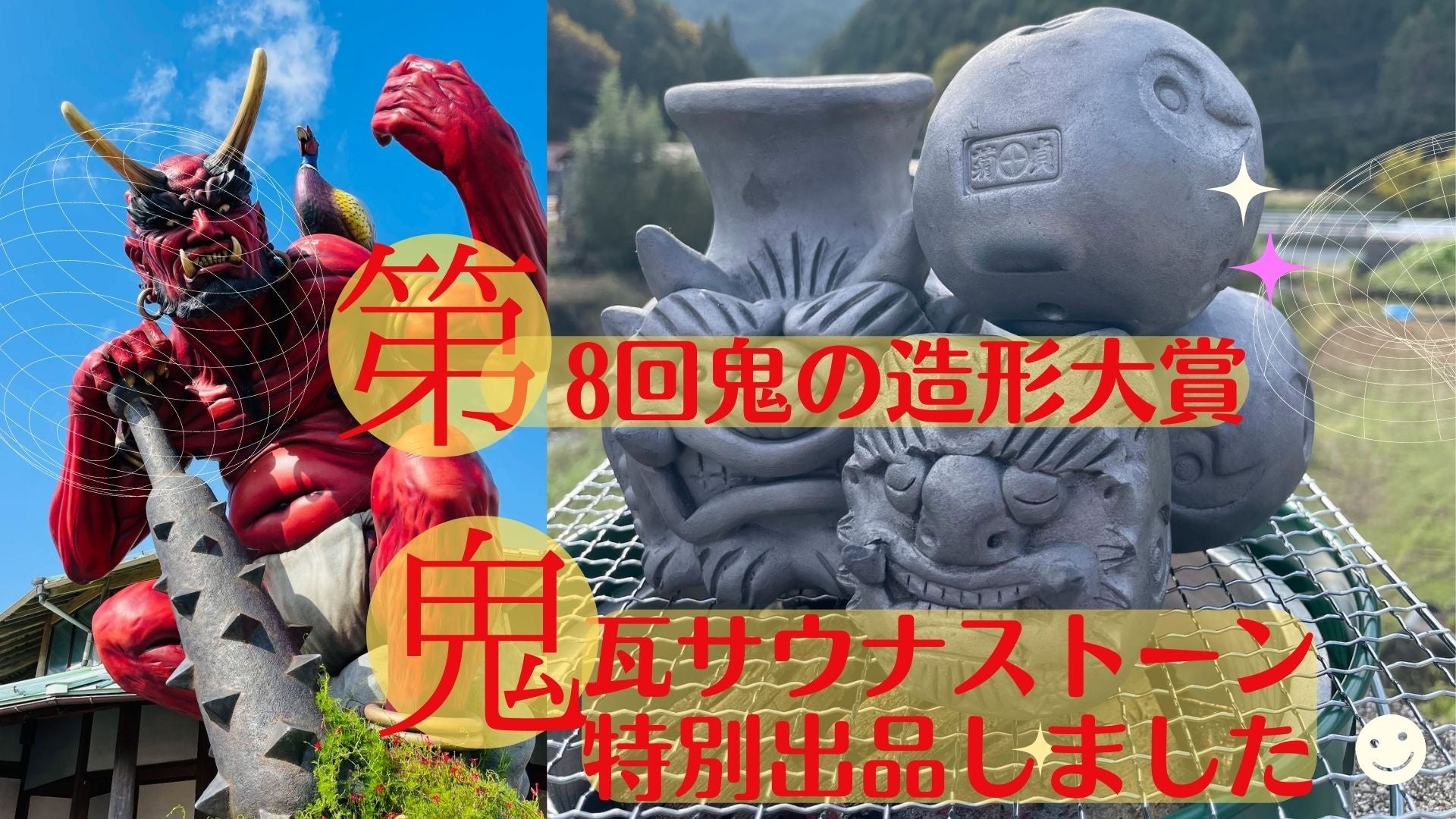 菊間瓦サウナストーン『鬼丸』『鬼玉』が愛媛県 鬼北町 第8回 鬼の造形大賞に特別出品しました。【鬼サウナ・伊予の湯治場 喜助の湯】