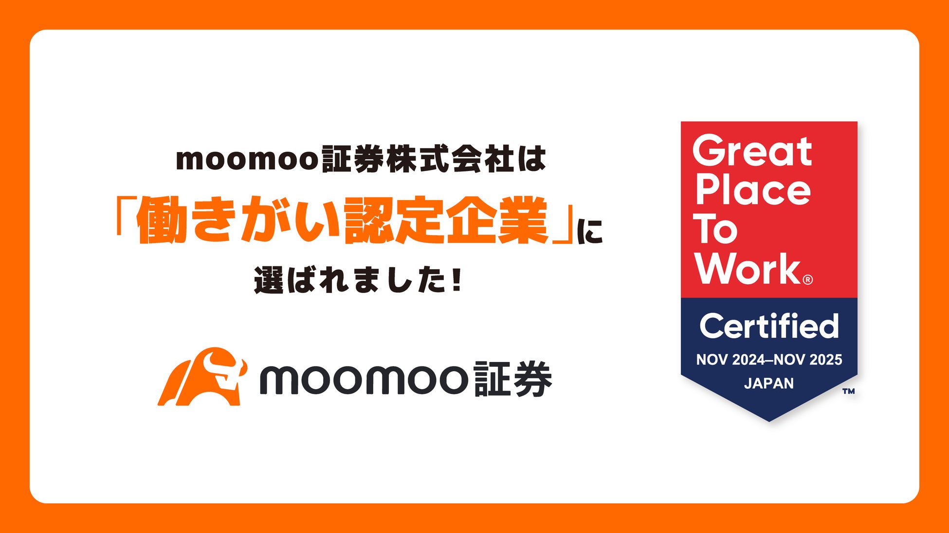 moomoo証券株式会社(ムームー、本社:東京都渋谷区、代表取締役社長:伊澤フランシスコ、以下「moomoo証券」)はこの度、世界150カ国で企業調査を行う株式会社働きがいのある会社研究所(本社:東京都港区、代表取締役社長:荒川陽子、以下「GPTW Japan」)が定める、「働きがいのある会社」に初認定されたことをお知らせいたします。