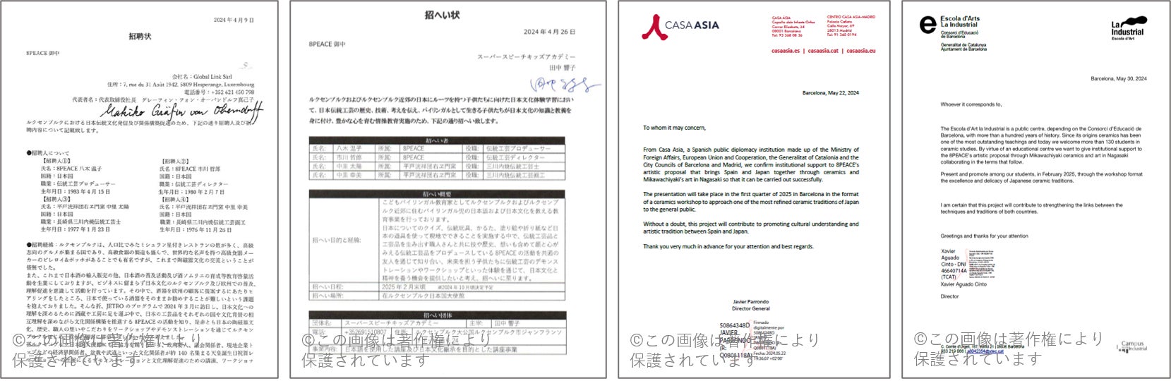 このほかにも、在ルクセンブルク日本国大使館及び在バルセロナ日本国総領事館の協力のもと、現地の文化芸術教育機関から招聘をいただき、ルクセンブルク・バルセロナの複数ケ所にて、三川内焼の講演会、陶芸制作デモンストレーション、盃を使用した日本酒飲み比べワークショップなどの文化交流イベントを開催します。