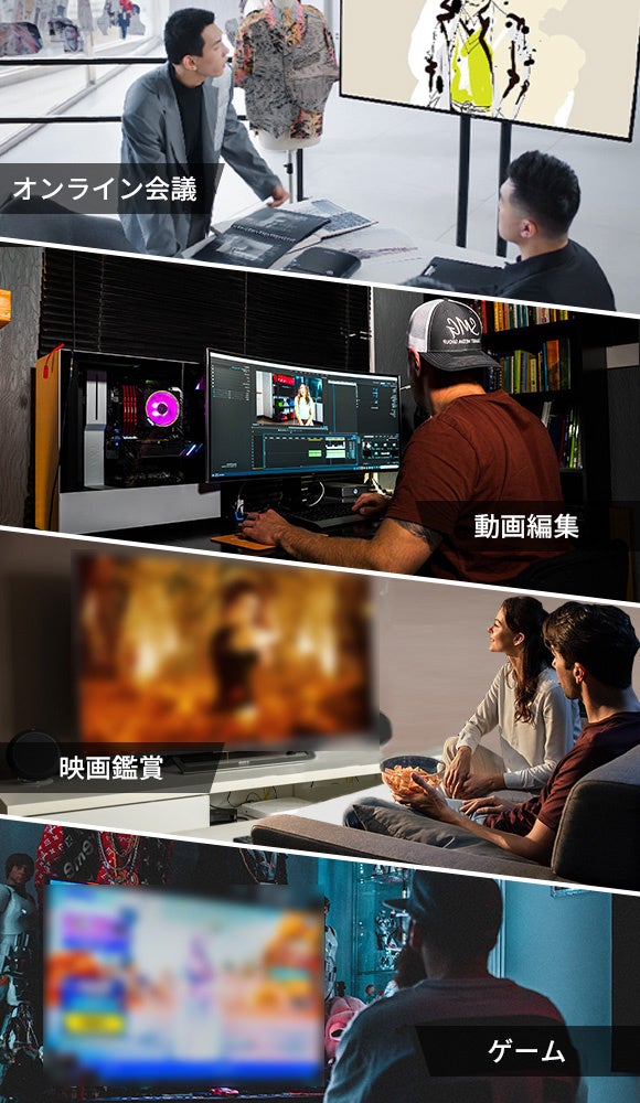 さらに、2台のパソコンからの4K/60Hz同時出力もサポートしています。この卓越した性能は映画鑑賞やゲームなど、さまざまなシーンで快適性を高めるでしょう。