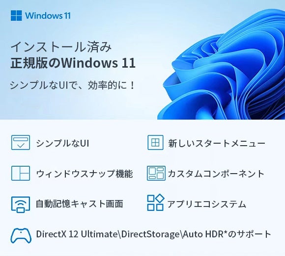 ご購入いただいた皆さまへお届けする際、Windows 11をインストールした状態でお届けいたします。届いた日からすぐにご利用いただくことができますので、生産性が高く楽しいコンピューターライフをお楽しみください!