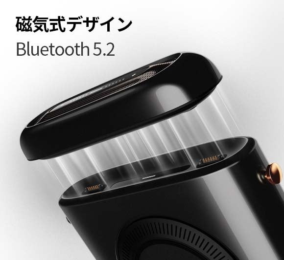 高品質のスピーカーは磁気式でコンピュータの本体に接続されるため、ミニPCとスピーカーが1つに融合されています。また、本体にはBluetooth 5.2が搭載されているため、スピーカーは単体で使用することもできます。このデザインは日本で初めてのものです。