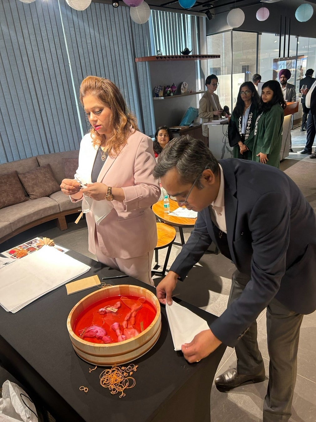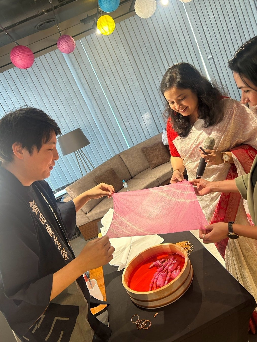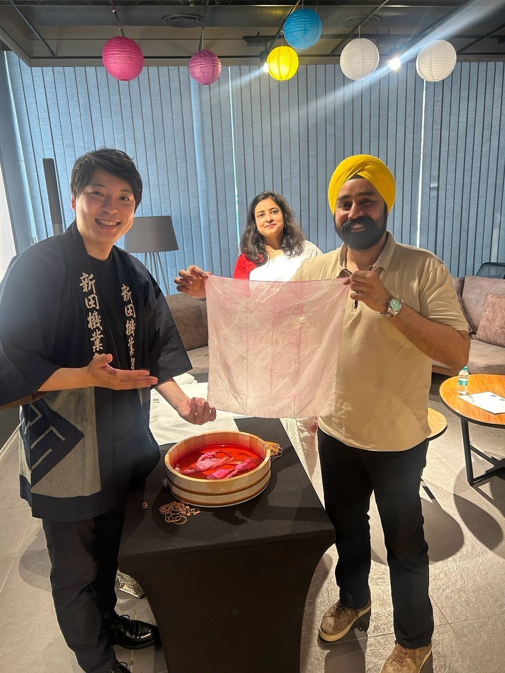 【米沢の文化をインドへ】インドの首都デリーにおいて、米沢市の文化や産業を体感いただく紅花染体験&日本酒試飲イベントを開催!