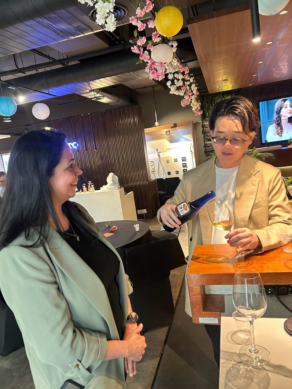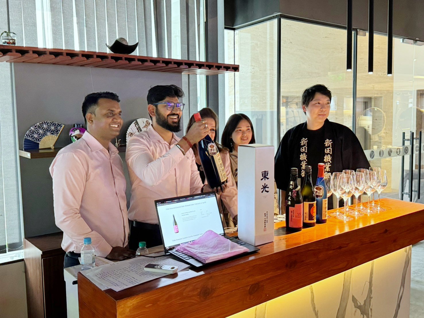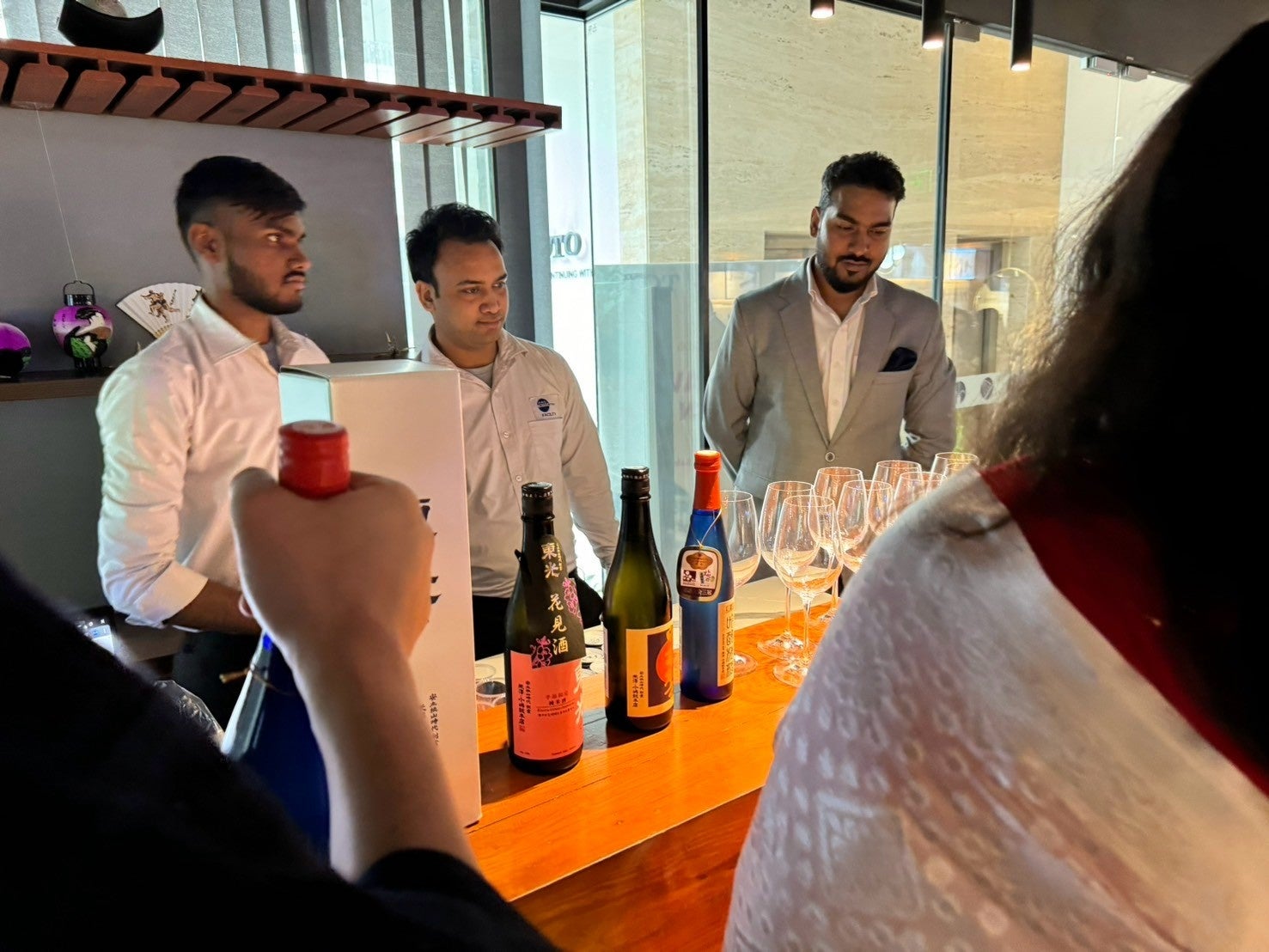 日本酒試飲では、株式会社小嶋総本店の日本酒「東光」や梅酒「東光 吟醸梅酒」など4商品を振る舞いました。株式会社小嶋総本店は、安土桃山時代に創業し、現在に至るまで日本酒製造を続ける酒造メーカーであり、米沢市で醸される日本酒の味をインドの人々にご試飲いただく機会となりました。参加した現地の人々は、日本酒を口にしたことのない方がほとんどでしたが、日本酒・梅酒のどちらについても「おいしい」との好評を得ました。