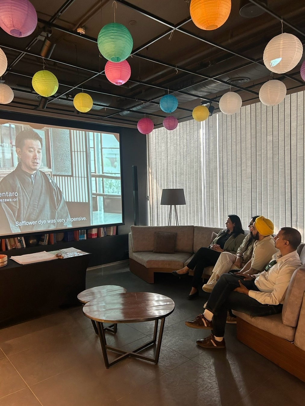 TOTO DELHI SHOWROOMでのPRイベントには、ショールームを利用する顧客と従業員、インドのホテル業関係者等、約50名が参加し、はじめに米沢市の基本情報を紹介し、米沢の伝統文化・祭りを紹介する動画の上映を行いました。