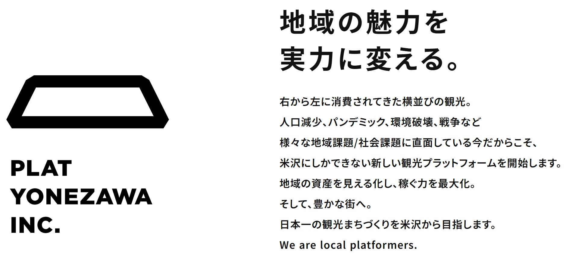 プラットヨネザワ株式会社は米沢の観光まちづくりを推進する法人組織として、2022年に誕生しました。先人からのバトンとなる伝統と文化を、これからの世代へ渡していく取り組みの「プラットフォーム(土台)」となるために。観光産業という広大な海の中で、日々蓄積するデータ・情報を分析・活用し、米沢の事業者の皆様と共にあゆむ道を指し示す存在であり続けます。
