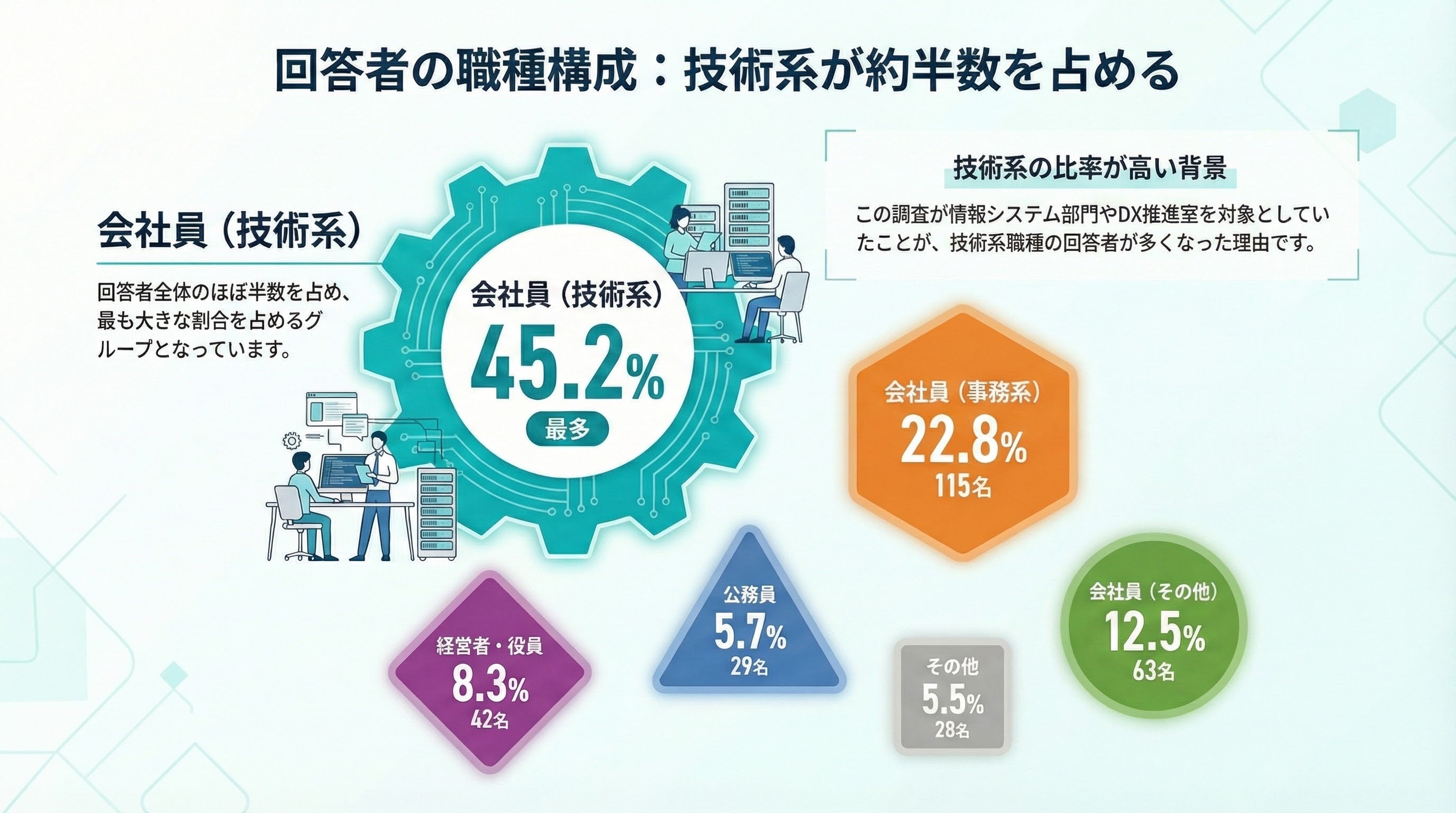 1. 技術系45.2%・事務系22.8%:職種構成が示す活用の偏り