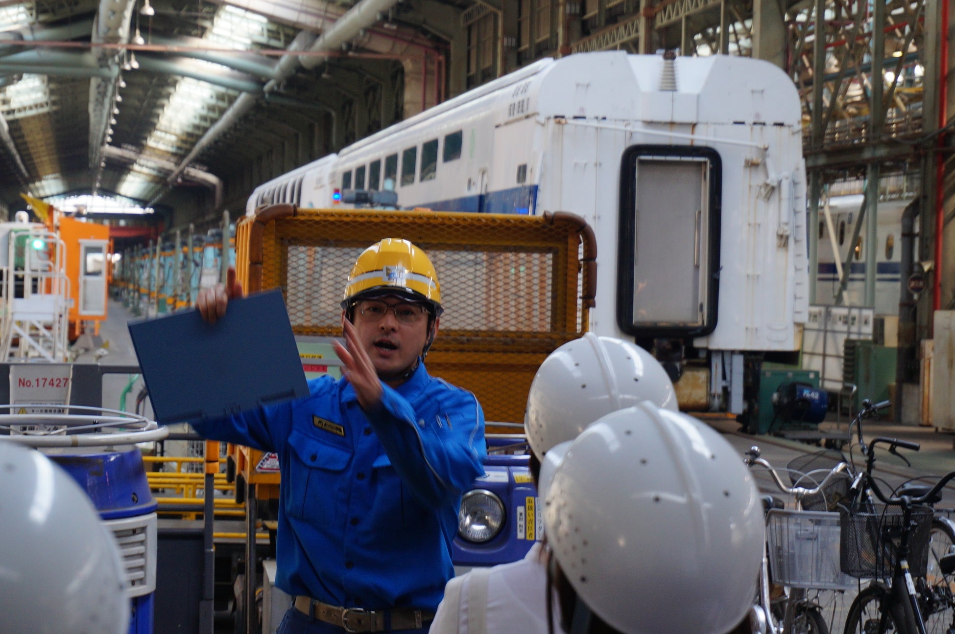 山陽新幹線の運行を支える博多総合車両所で、車両整備士が場内を案内するツアー。