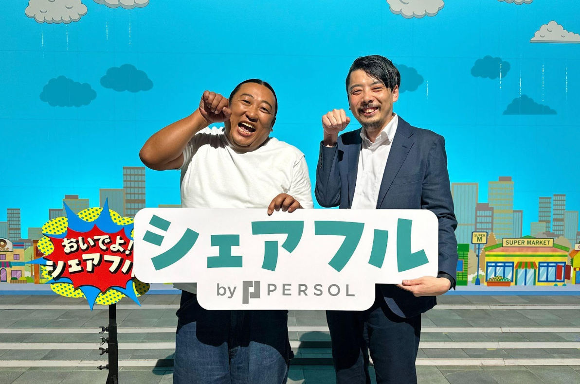 スキマバイトアプリ『シェアフル』、新CMで井桁弘恵さん・ロバート秋山竜次さんがまねきダンスに挑戦!