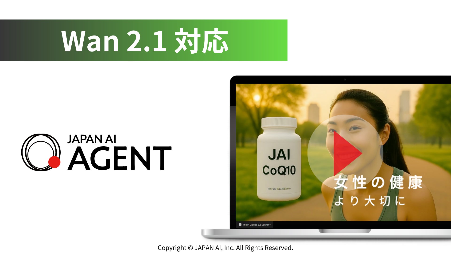 JAPAN AI株式会社(本社:東京都新宿区、代表取締役社長:工藤 智昭、以下JAPAN AI)は、提供している「JAPAN AI AGENT」において、Alibaba Group Holding Limitedが提供する動画生成モデル「Wan 2.1」に対応開始したことをお知らせいたします。