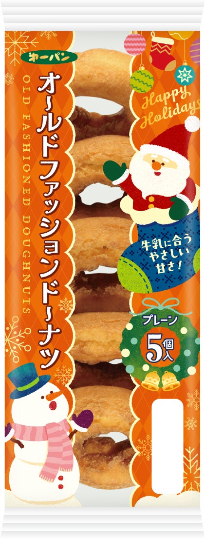 外はさっくり・中はソフトな食感の、オールドファッションドーナツです。5個入でコスパがよく、まとめ買いしたいときや大勢でシェアするときに便利。家族や仲間と過ごすおやつタイムにぴったりです。クリスマスパーティーでの手軽な1品としても活躍します。