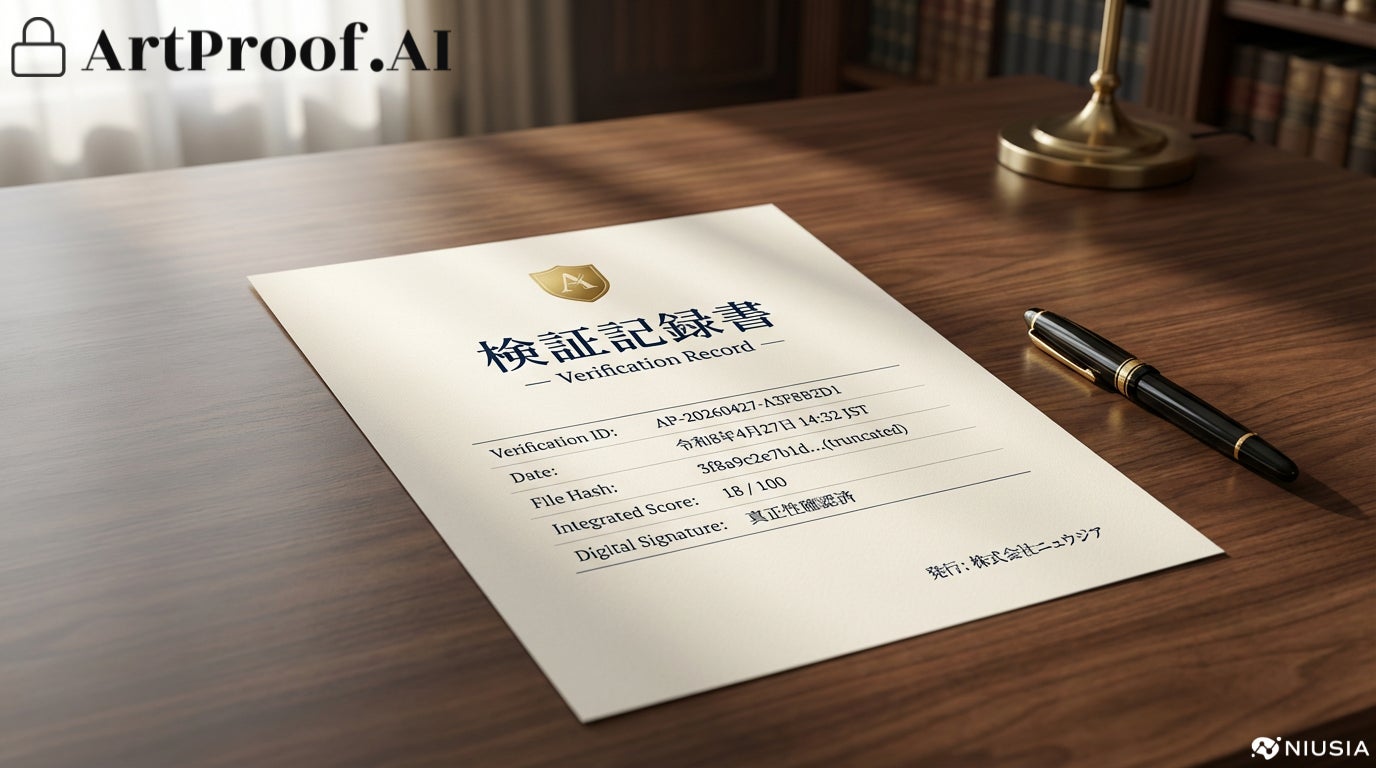 株式会社ニュウジア(本社:東京都中央区、代表取締役:柏口之宏/以下「当社」)は、コンテンツ制作企業向けに、納品前のクリエイティブ素材から「AIっぽさ」の痕跡を検出・可視化・自動修正し、改竄検知付きの検証記録書を発行する品質管理プラットフォーム「ArtProof(アートプルーフ)」を、本日2026年4月28日より正式に提供開始しました。