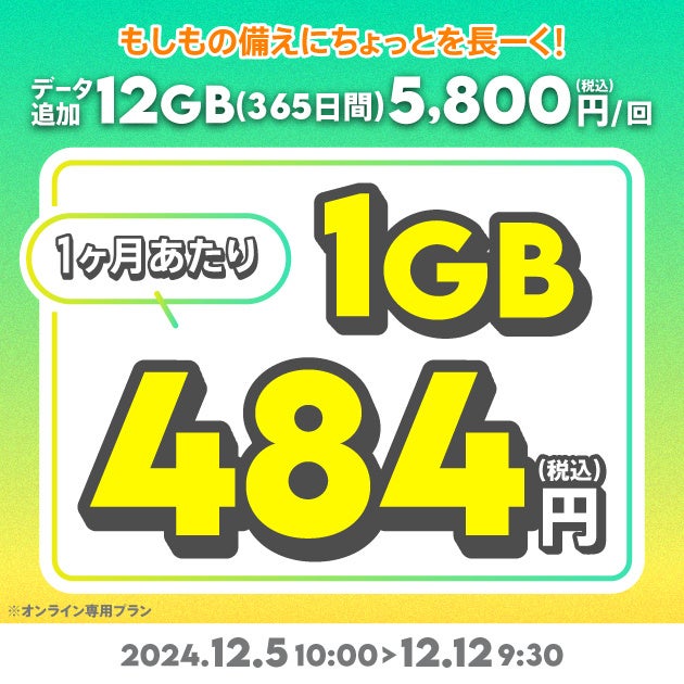 【期間限定】データ追加12GB (365日間) |